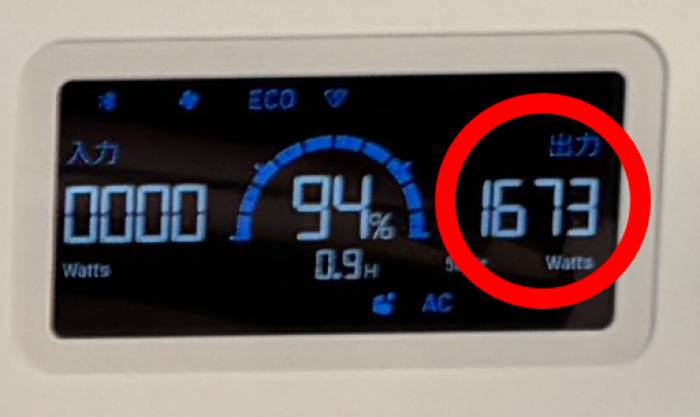 ディスプレイの上部分に「ECO」の文字が光っていますが、これはBLUETTI特有のエコモードがオンになっている状態です。