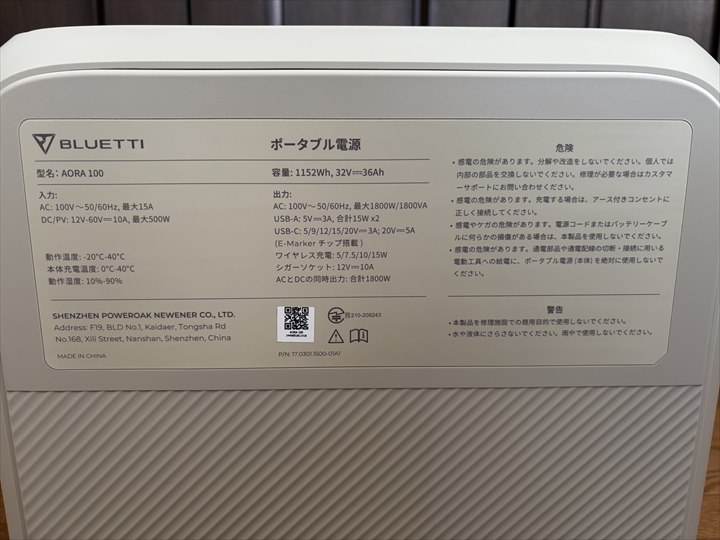 ちなみに『AORA』シリーズは容量768Whの『AORA80』と今回ご紹介する容量1152Whの『AORA100』の2種類が出てるよ!