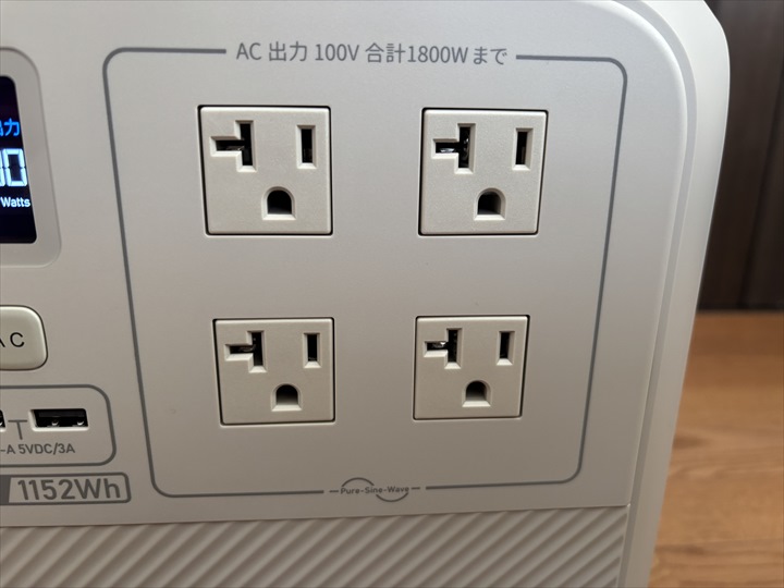 容量1152Wh、定格出力1800W(電力リフト機能で最大2700W)で、ほとんどの家電製品が使える