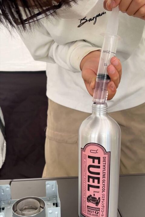 息子は小学校4年生。一般的なアルコール燃料はまだ危なくて使わせられませんが、このセットに入っているジエチレングリコール燃料なら安心!