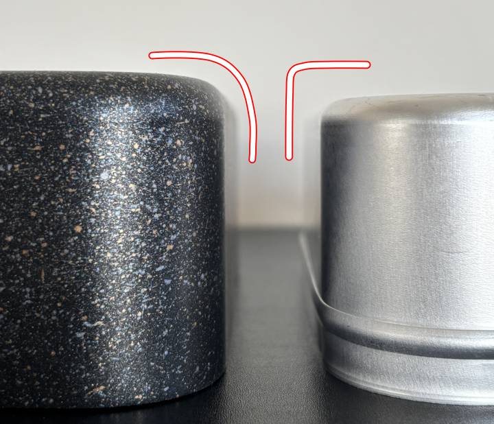 一般的なメスティンは角R4~5に対して、d+メスティンは角R10(半径が10mm)とだいぶ丸みがあるのです