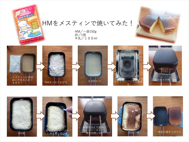 d+メスティンの焦げ付きにくさを検証するため、ホットケーキとお好み焼きを作ってみました。
